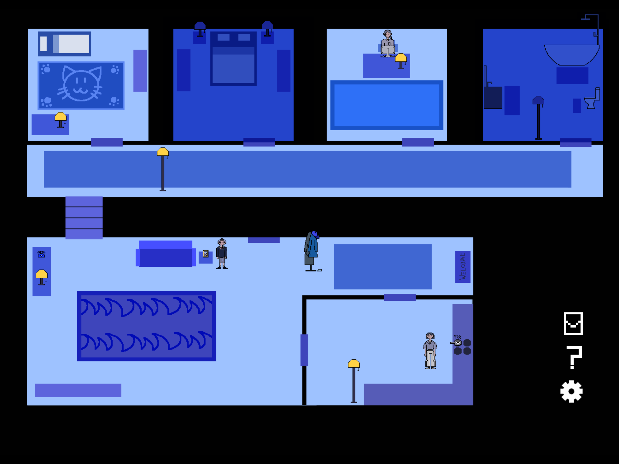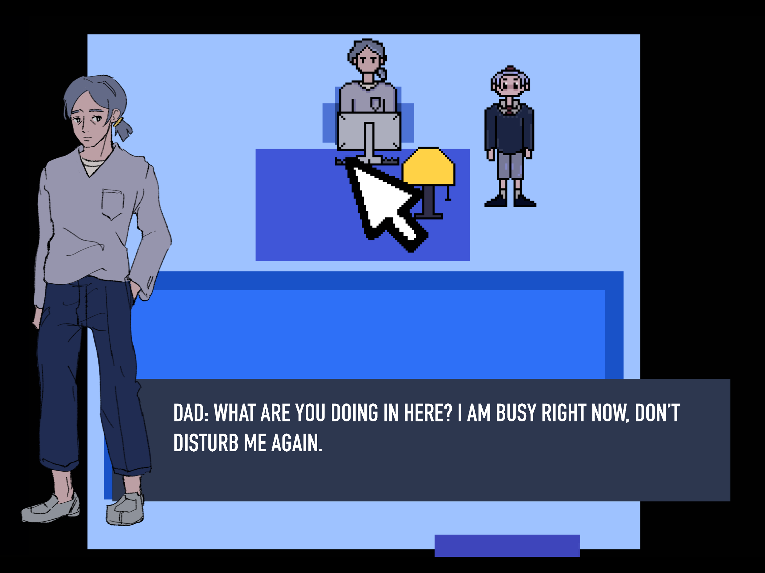Family Issues is a 2D role-play game where you need to explore the house, talk to other characters, and find keys to open doors that are closed.