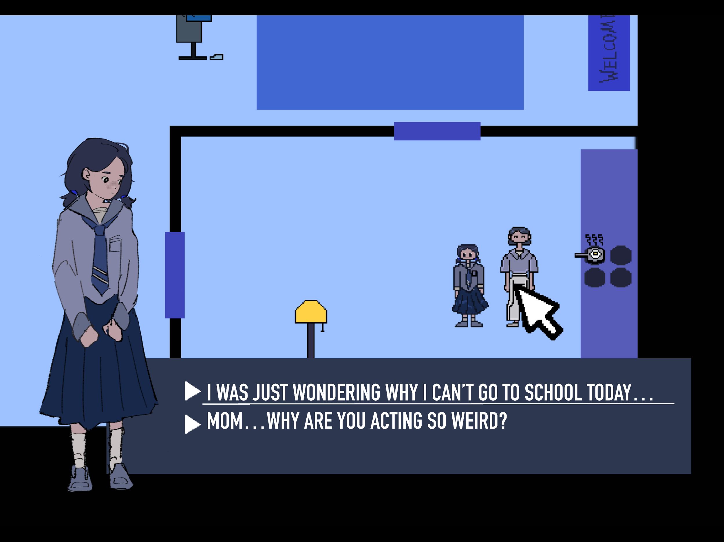 After a talk with them, you can't go to school anymore. At first, the main character thinks that it's nice and there's more time to spend having fun. But after one of your friends tries to visit you to play, your parents forbid you to go out completely. Now The Player has to find out what happened with the parents and why most of the rooms in this house are closed.
